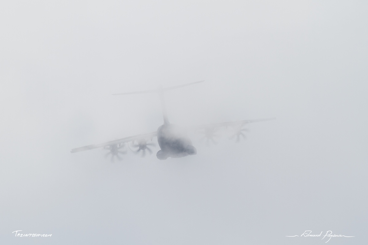 Airbus A400MBrouillardCanon EF 100-400mm f/4.5-5.6L IS USMCanon EOS 7DComparaison Avant|AprèsHéliceMilitaireNuageSalon aéronautique du Bourget 2013