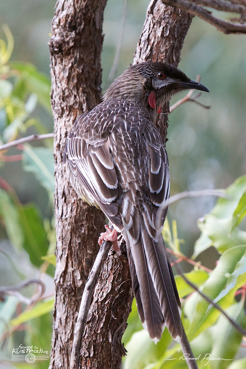 - ^ Saunders, Anthony S. J.; Burgin, Shelley (2001). "Selective foliage foraging by Red Wattlebirds, Anthochaera carunculata, and Noisy Friarbirds, Philemon corniculatus". Emu. 101 (2): 163–66. Bibcode:2001EmuAO.101..163S. doi:10.1071/MU00007. S2CID 82157738.