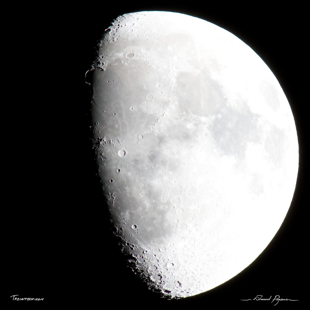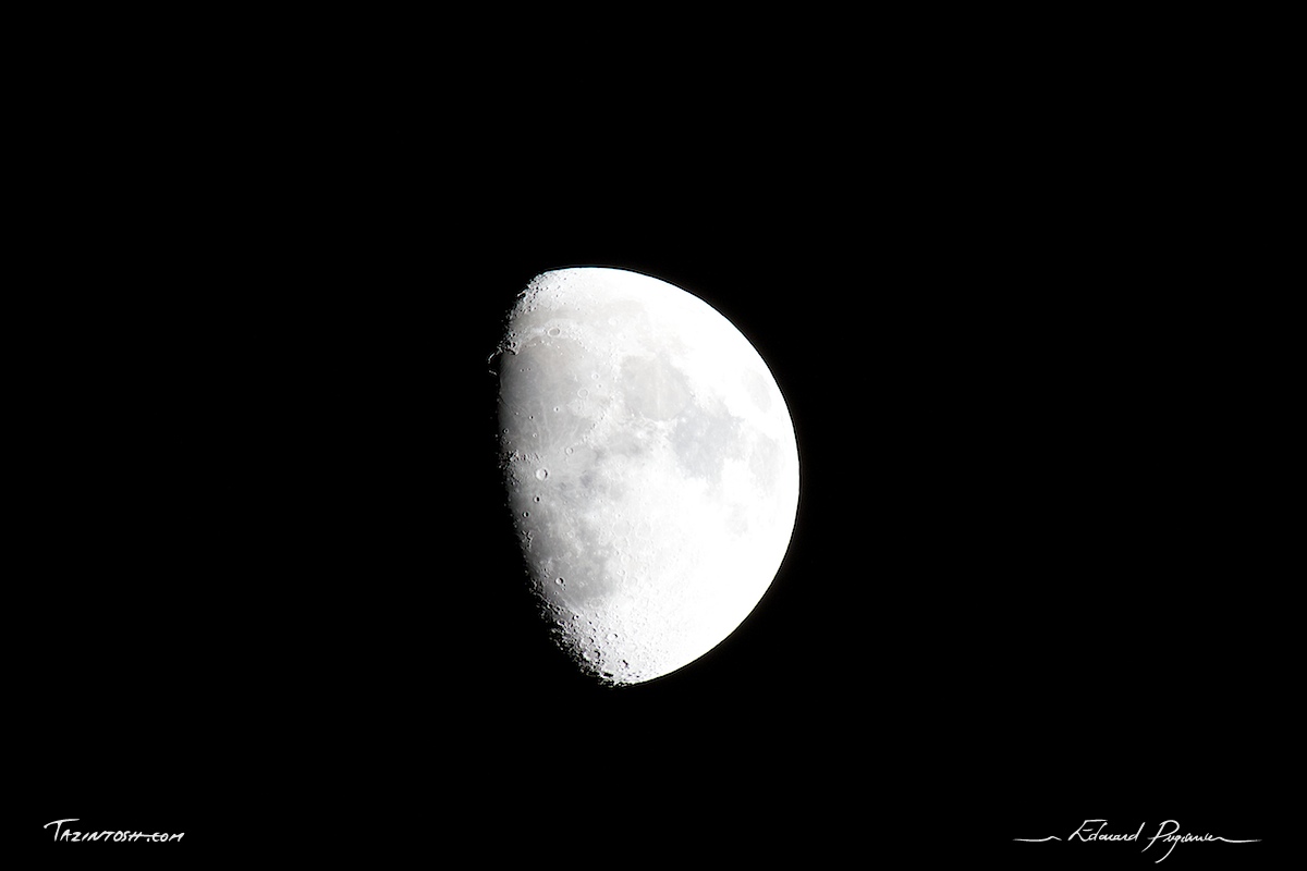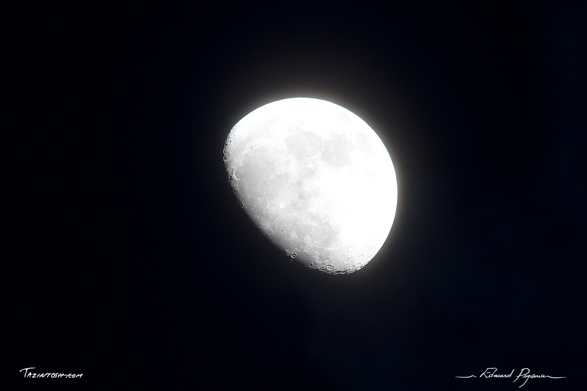 En avril dernier donc, je prenais ces photos de la Lune au Canon EOS 7D + Canon Extender EF 2x II + Canon EF 100-400mm ƒ/4.5-5.6L IS USM.