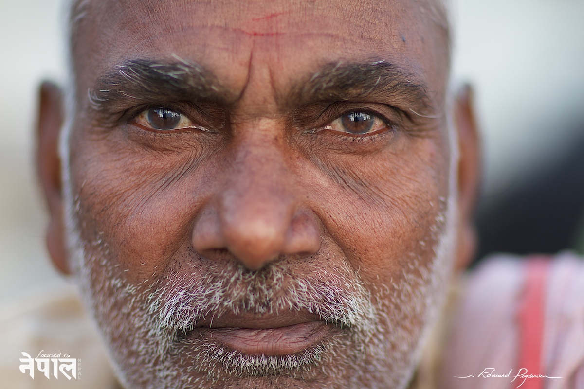 Nous sommes à Katmandou, proche de la maison de la Kumari (déesse vivante). Cet homme était assis à hauteur de l'objectif et m'a offert ce puissant regard.
