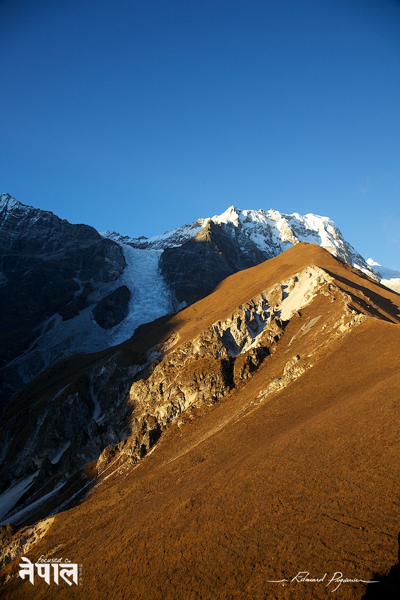 Vue depuis le sommet Kyanjin 30 octobre 2013 Népal • Photographie Canon EF 24-105mm f/4L IS USMCanon EOS 5D Mark IIComparaison Avant|AprèsMontagnePanoramiquePaysage Share Twitter Facebook Pinterest Tumblr Google+ Ce coucher de soleil passé à ≈ 4300 m a été saisissant. Un souvenir inoubliable et bien entendu, une descente vers Kyanjin Gompa de nuit ! En arrière-plan : le glacier Lirung. Panoramique constitué de 8 photos Voir en grand Un cliché parmi les huit